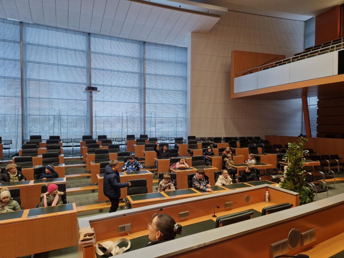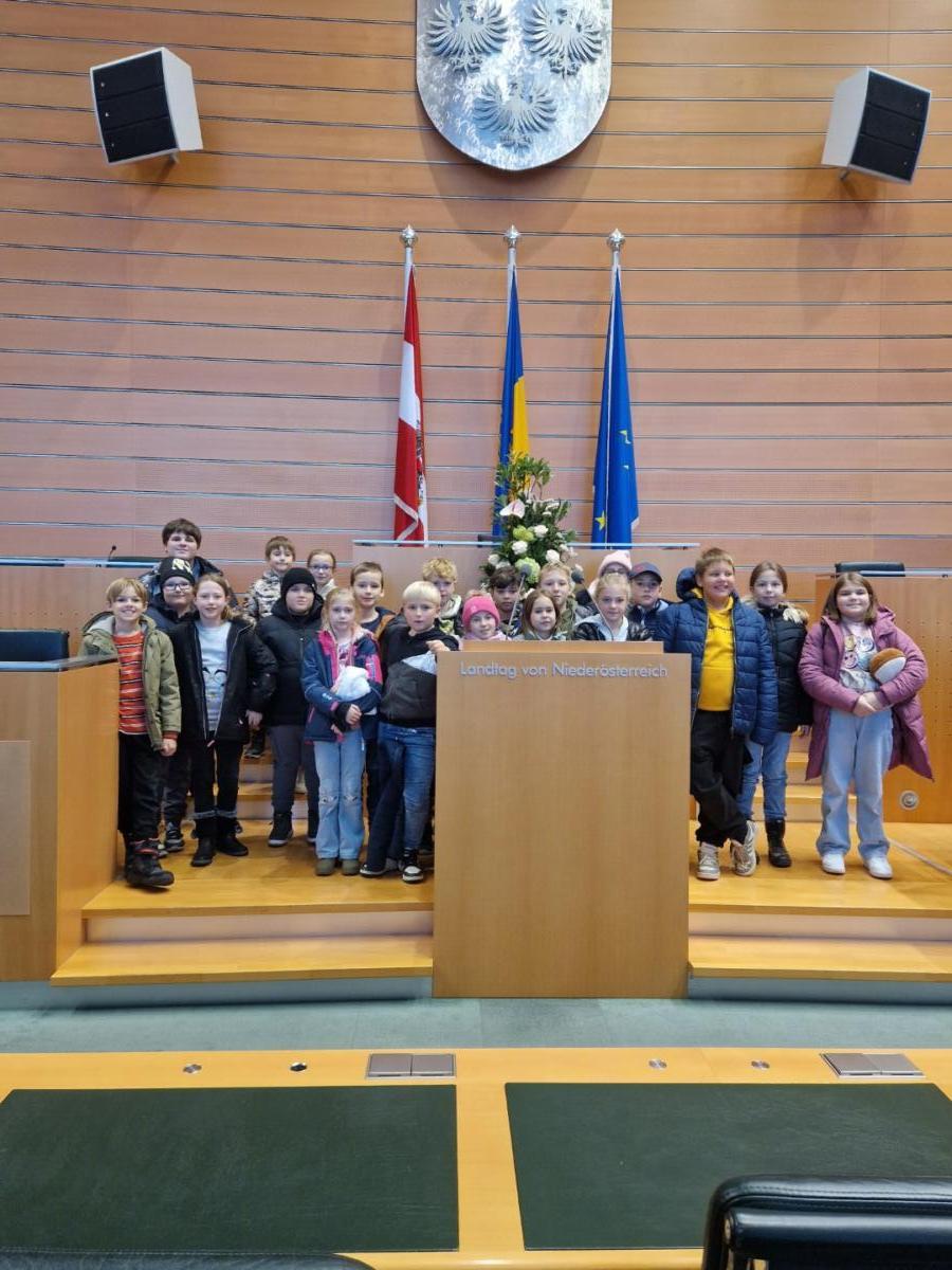 Anschließend wurde das Regierungsviertel besichtigt. Im Klangturm ging es hoch hinauf und im Landhaus konnten sich die Kinder ein Bild von einer Sitzung des Niederösterreichischen Landtages machen.