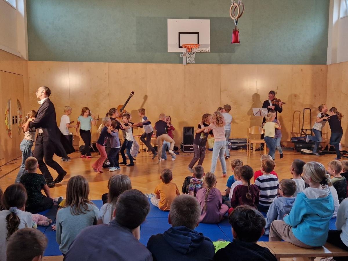 Pünktlich zum Jubiläum „200 Jahre Johann Strauß“ begaben wir uns am 24. September 2025 gemeinsam mit der Volksschule Spannberg auf eine musikalische Reise ins 19. Jahrhundert.
